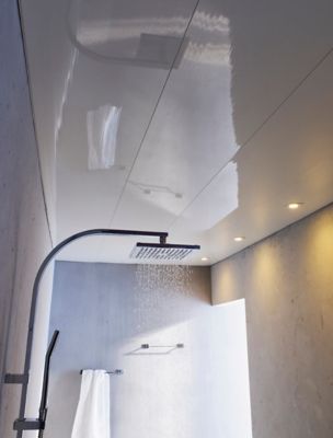 Le plafond d'une salle de bain est souvent envahi par les gaines électriques, la tuyauterie et le réseau sanitaire.